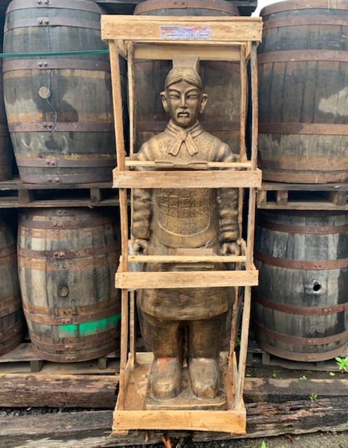 CRATED 5FT TALL HANDMADE TERRECOTTA HEAVY WARRIOR IN BRONZE FINISH