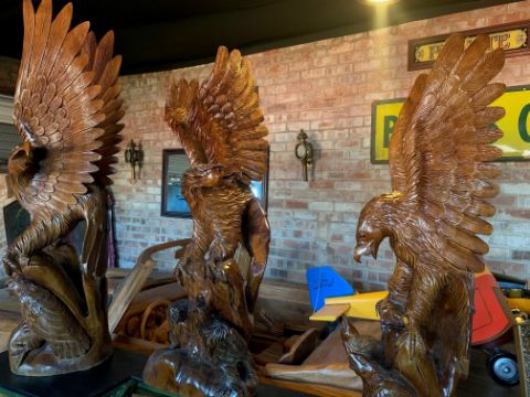 SOLID WOOD HIGHLY CARVED ORNATE EAGLE 1.3M STATUE