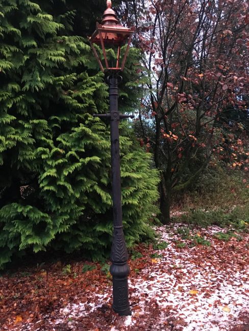 CAST IRON VICTORIAN STYLE LADDER BAR LAMPOST IN BLACK PRIMER WITH NEW GLAZED COPPER TOP