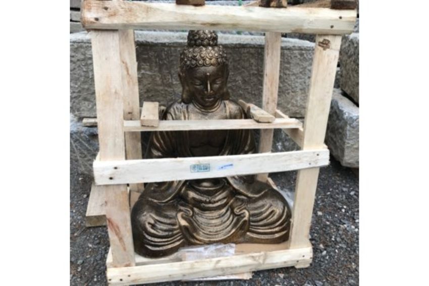 CRATED HANDFIRED TERRECOTTA BUDDHA SITTING IN BRONZE