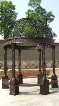 CAST IRON ORNATE GAZEBO WITH CORINTHIUM COLUMNS AND ORNATE WROUGHT IRON ROOF - UNUSED - CRATED – NEW