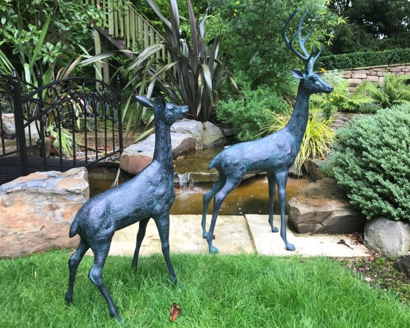 CAST METAL PAIR OF MATCHING DEERS IN VERDI BRONZE FINISH