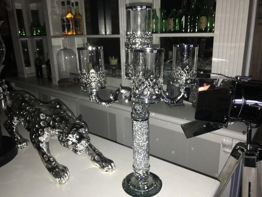 4 X CRYSTAL 5 BRANCH CANDLEBRAS