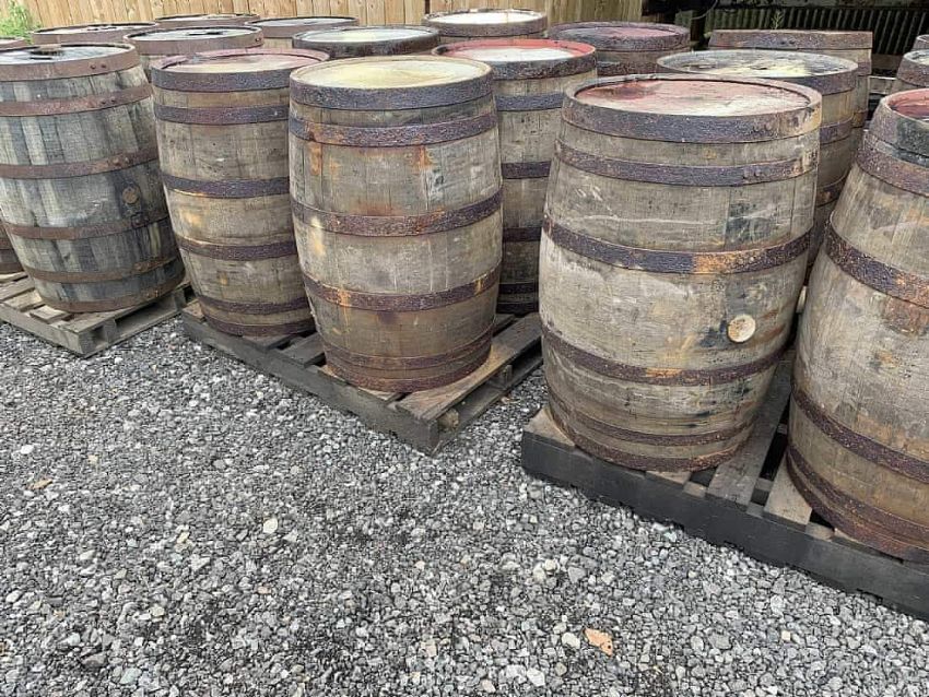 6 x OAK WHISKEY BARRELLS ON LARGE PALLET