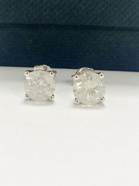 14ct White Gold Diamond stud earrings featuring, 2 round brilliant cut Diamonds (2.03ct TDW), 4-claw set.
