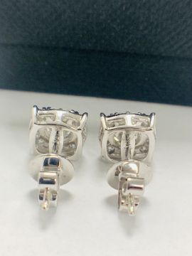 18ct White Gold Diamond earrings featuring centre, 2 round brilliant cut Diamonds (1.39ct), Clarity P1, Colour G/H, claw set, with 24 round brilliant cut Diamonds (0.49ct), Clarity SI, Colour G/H, grain set.
