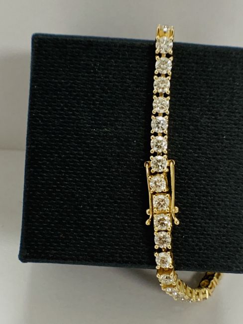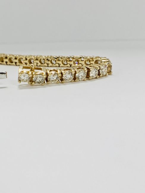 14ct Yellow Gold Diamond tennis bracelet featuring, 47 round brilliant cut Diamonds (4.92ct TDw), claw set.