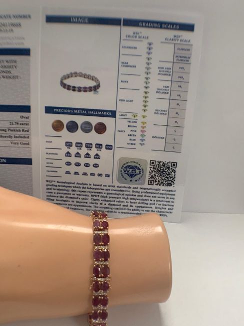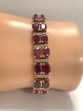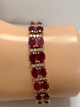 14ct Rose Gold Ruby and Diamond double row bracelet featuring, 44 oval cut, medium to dark red Rubies (21.79ct TSW), claw set, with 88 round brilliant cut Diamonds (1.67ct TDW), claw set.