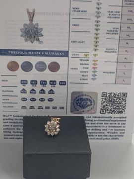 14ct Rose Gold Diamond pendant featuring centre, round brilliant cut, cognac Diamond (0.81ct), claw set, with 10 round brilliant cut Diamonds (0.51ct TDW), claw set.