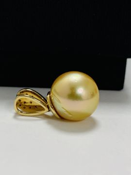 14ct Yellow Gold Pearl and Diamond pendant featuring, golden South Sea Pearl, with 13 round brilliant cut Diamonds (0.19ct TDW), claw set.