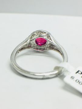 5mm natural Ruby,Platinum Diamond setting,0.29ct in 29 brilliant cut diamonds,g colour,vs clarity,4.85gm S PLatinum 950,uk london hallmark,uk size L,condition fine.Ruby treatment is unknown