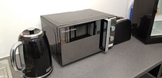Kitchen Joblot of Microwave, toaster, kettle and mini fridge all in black and good condition