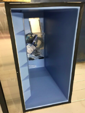 The B-801SA storage bin configures perfectly with Hoshizaki Ice makers to ensure ample quantities of ice at all times. Rear: no issuesRight hand side: no issuesTop & Inside: No issues, ice scoop, pipes and four feet.Front: slight dents on front.Left hand side: dent on side.