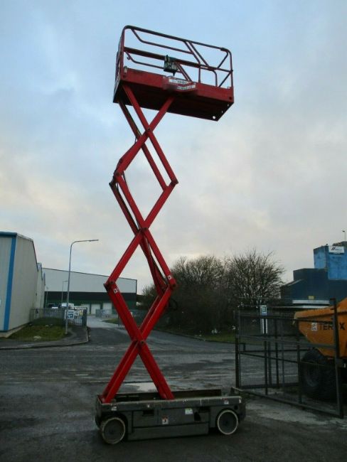 Haulotte Compact 8 Cherry Picker. Year 2007. About 8.2 metres working height. Weighs about 1730 kg. Lift capacity about 350kg. Self propelled. Extending platform. Only 218 hours on clock. Battery powered and on board charger