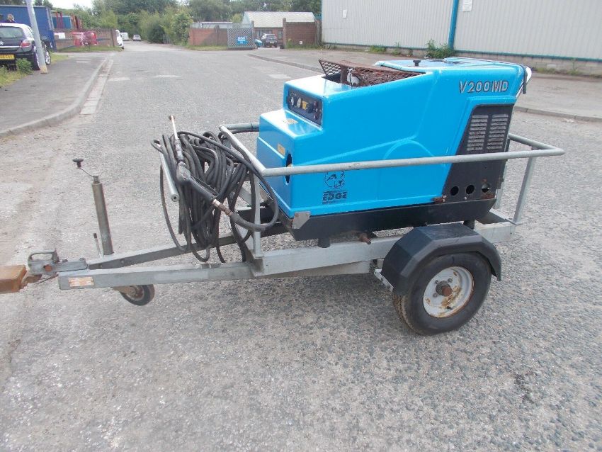 Edge V 200 MD Towable Hot and Cold Diesel Engined Pressure Washer. 200 bar. 15 litres per minute. 150 degrees. Twin cylinder Diesel engine. Electric start. Good pressure and temperature. Long pressure hose / lance