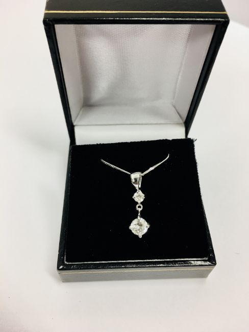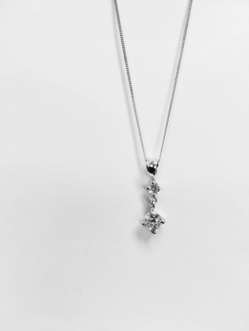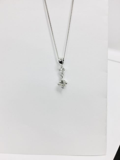 18ct diamond drop pendant ,0.60ct diamonds (0.50ct and 0.10ct) 2gms 18ct white gold ,uk hallmark 750,