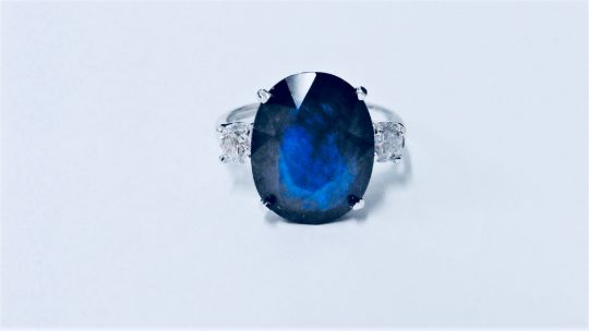 Platinum Sapphire diamond three stone Ring,11.94ctct GRS certificated Sapphire,two 0.25ct Diamnds,si clarity i colour,4.5gms platinum 950,uk size M.uk hallmark 950,Sapphire is treated,