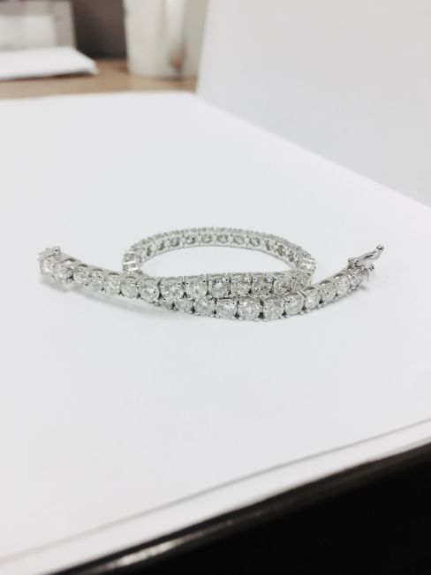 10.50ct Diamond tennis bracelet set with brilliant cut diamonds of H colour, si1 clarity. All set in a simple four claw setting. Set in 18ct gold. Stamped 750. 7” length.diamonds are tested as cvd man made