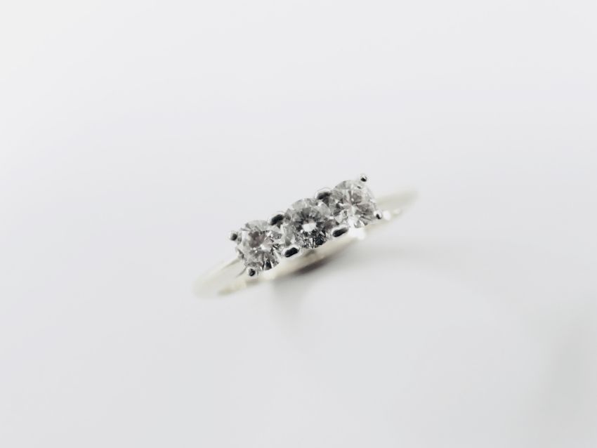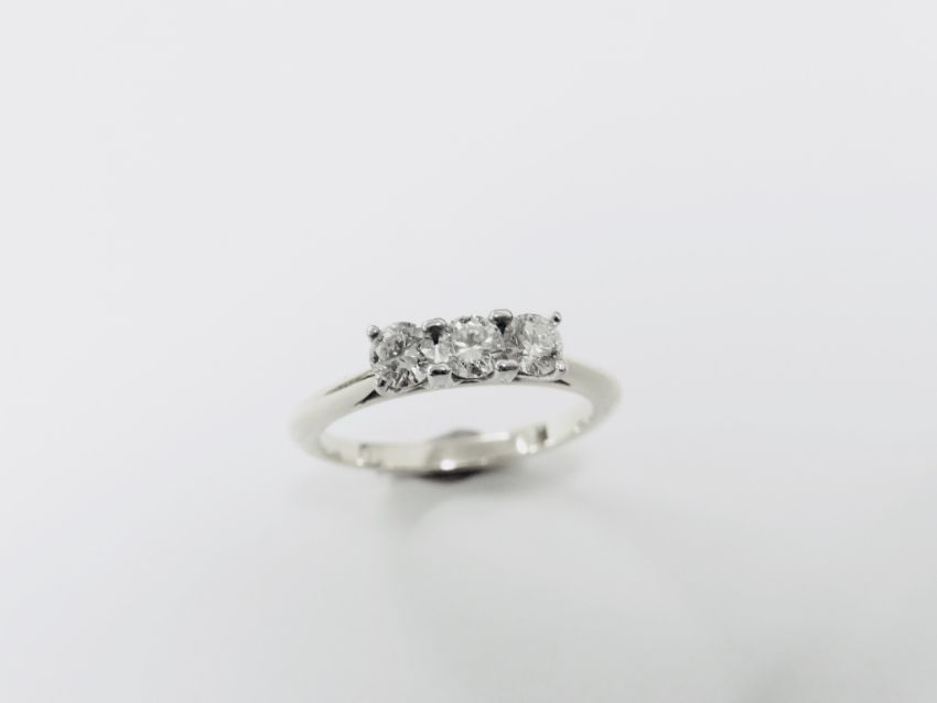 1.50ct diamond three stone,3x 0.50ct h colour i1/2 clarity( natural clarity enhanced),18ct white gold setting 3.5gms,uk size L,uk hallmark,can be sized,