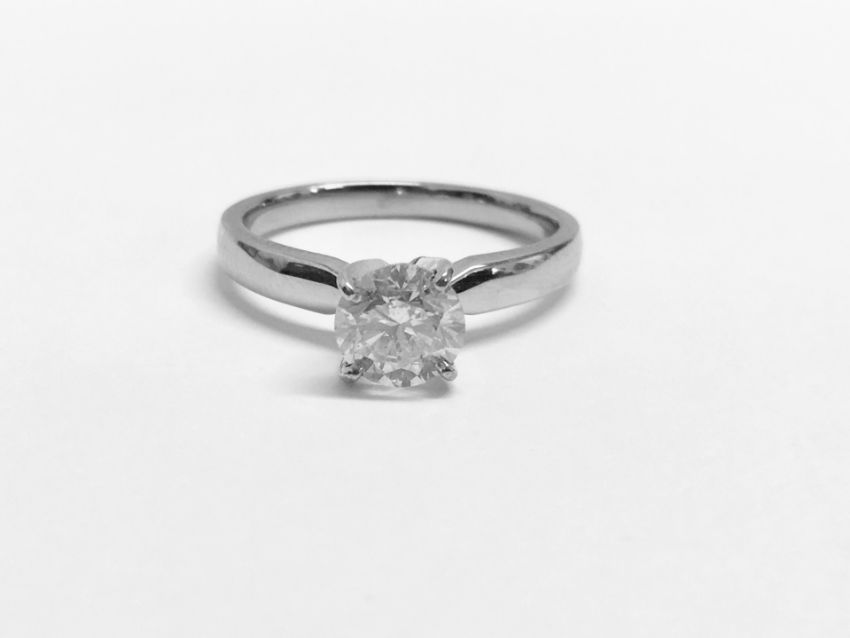 1ct diamond solitaire ring set in 18ct white gold,1ct natural diamond i colour i2 clarity ,3.5gms 18ct white gold uk manufacture,uk hallmark size L ,