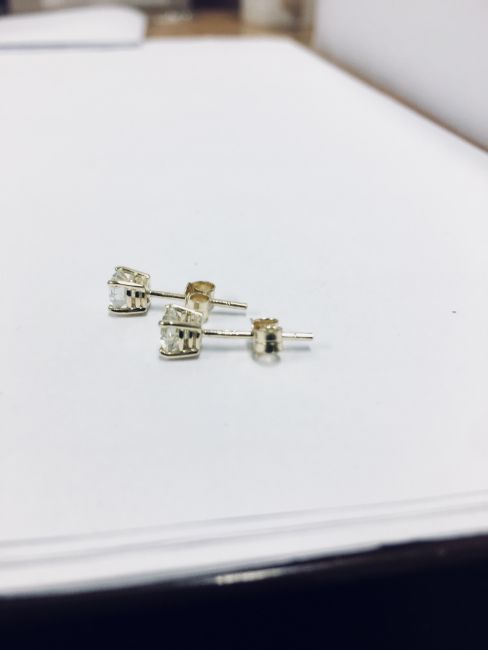 1.40ct Diamond solitaire earrings set with brilliant cut diamonds, I colour i2 clarity. Four claw setting with standard butterfly backs. Hallmarked 750 18ct yellow gold. Diamonds are natural untreated