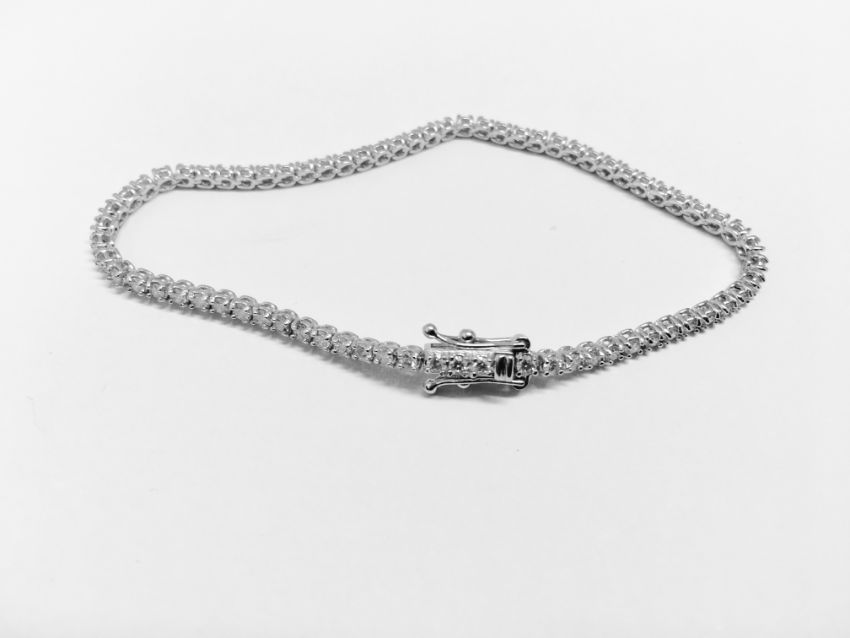 2.10ct diamond tennis bracelet with 70 brilliant cut diamonds, H/I colour and Si2 clarity, weighing a total of 2.10 ct. 3 claw setting in 18ct white gold. Hallmarked 750.