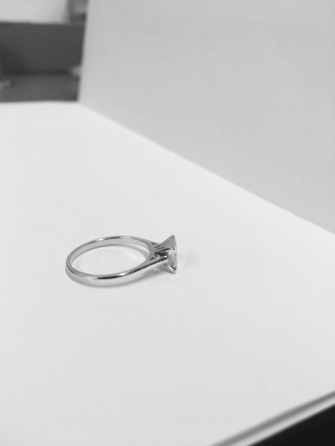 1.01ct diamond solitaire ring with a princess cut diamond. H colour and 12 clarity. Set in 18ct gold 4 claw setting, size M. hallmarked 750.
