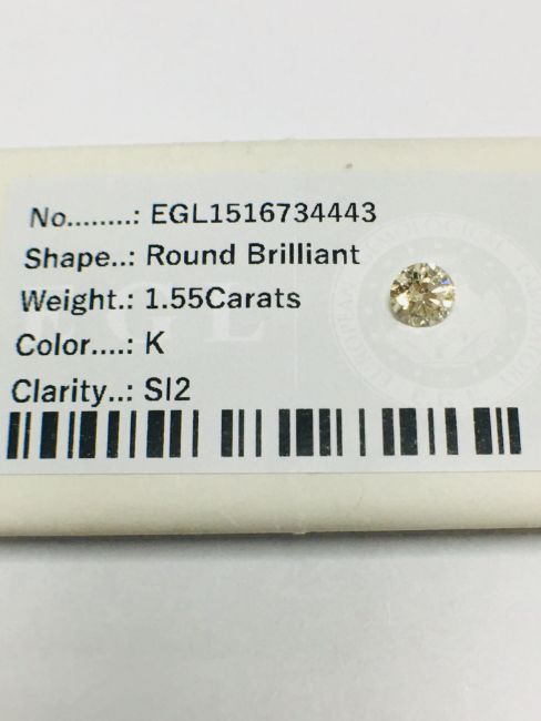 1.55ct Natural Brilliant cut DiamondSI2 clarity,K colour,EGL certification,EGL1516734443
