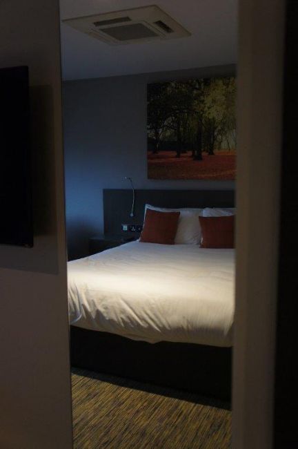 The contents of the room comprising: Double divan bed with headboard with twin night stands and lights fitted, armchair, desk unit with desk, suitcase stand, side table, wall mirror, wall art, electronic safe, scatter cushions, Russell Hobbs mini fridge, tea/coffee making facilities, ironing board and iron, floor length curtains, 2 x light diffuser blinds. Television NOT included.