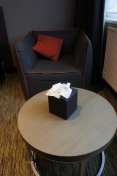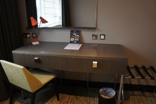 The contents of the room comprising: Double divan bed with headboard with twin night stands and lights fitted, armchair, desk unit with desk, suitcase stand, side table, wall mirror, wall art, electronic safe, scatter cushions, Russell Hobbs mini fridge, tea/coffee making facilities, ironing board and iron, floor length curtains, Roman blind, light diffuser blind.