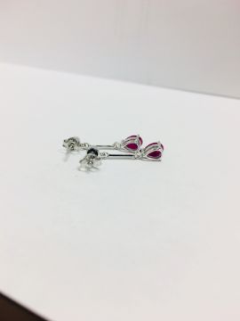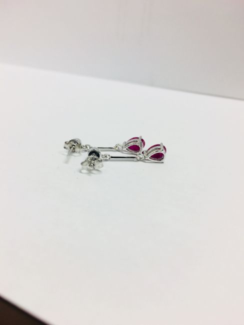 2 Pearshape Rubies 7X5Mm Each 0.70Ct (Total 1.50Ct),2 Brilliant Cut Diamonds 0.10Ct Total,1.90Gms 9Ct White Gold,Uk Hallmark London 375,Conditionfine/New