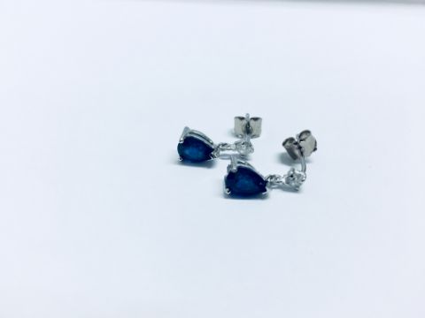 Each Set With A Pear Shaped Ruby ( Glass Filled ) And A Small Brilliant Cut Diamond. Aqua Weight Approx 0.70Ct And Diamond Weight 0.012Ct. Simple Claw Setting In 18Ct White Gold. Standard Posts And Butterfly Backs.