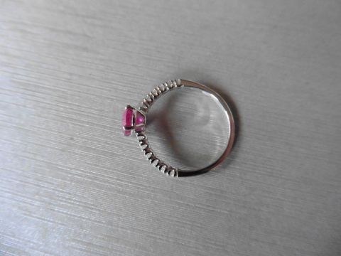 Oval Cut ( Glass Filled) Ruby With Small Diamonds Set Into The Shoulders. Set In 9ct Hallmarks. Ring Size L.