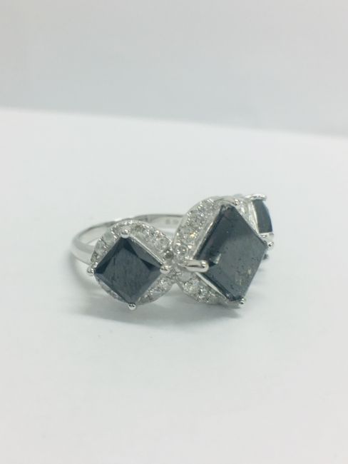 Featuring Three Princess Cut Black Diamonds 5.06Ct Tsw. 48 Round Brilliant Cut White Diamonds 0.69Ct Tdw