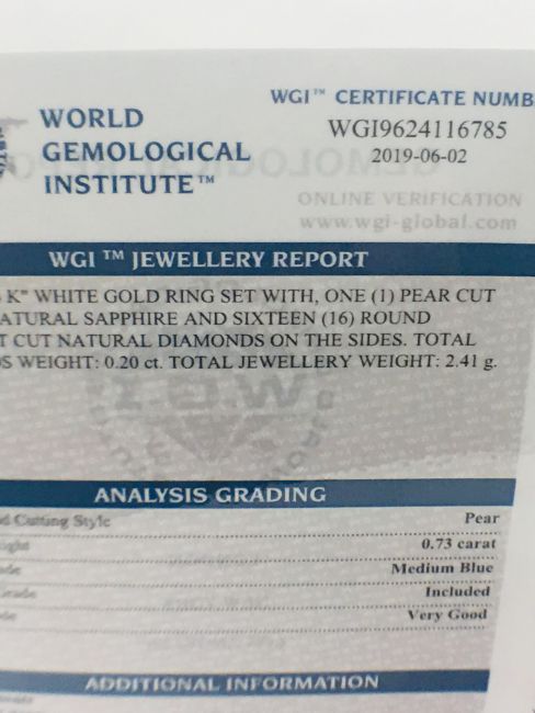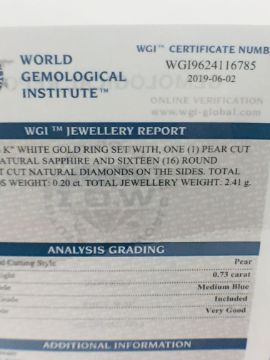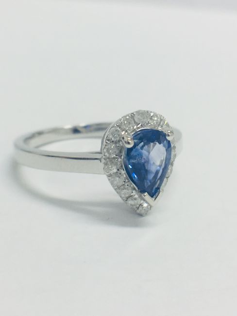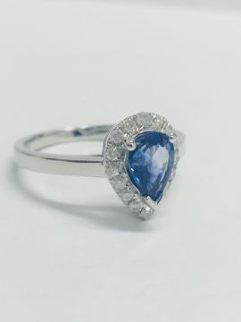 Featuring Pear Cut Center Sapphire 0.73Ct. 16 Round Cut Brilliant Diamonds 0.20Ct Tdw