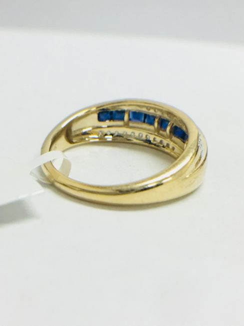 22 Diamonds 0.11Ct, 9 Sapphired Natural ,2.5Mm Pc,2.90Gms 9Ct Yellow Gold,Uk Hallmark 375,Uk Sixe L,