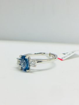 7Mmx5Mm Aquamarine Natural,0.20Ct Brilliant Cut Diamonds,I Colour Si3 Clarity,Natural,4.3Gms Platinum 950,Uk Size L,Uk Hallmark,Aquamarine Is Tested As Natural(Routinely Enhanced)