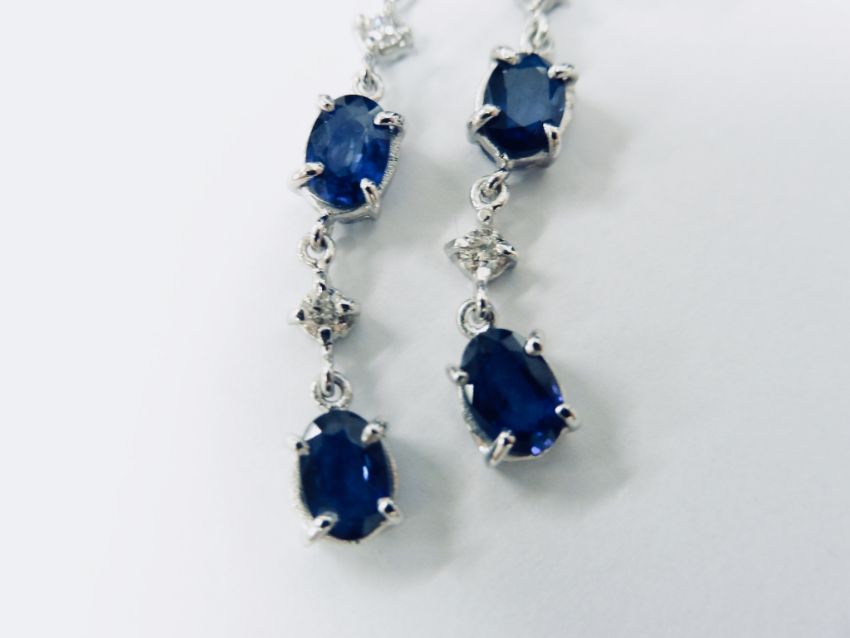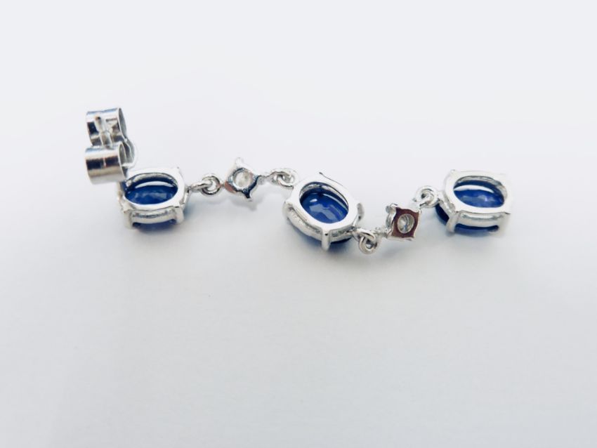 Each Set With 3 Oval Cut ( Treated) Sapphires And 2 Small Brilliant Cut Diamonds, H/I Colour, Si2 Clarity. Total Weight Apprx 4.8Ct Sapphires. Standard Butterfly Backs.
