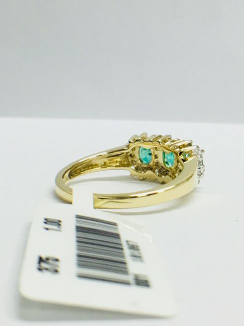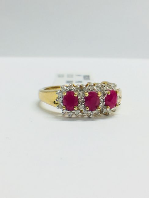 3 Oval Natural Rubies 0.49, Diamonds Surrounding ,Weight 0.13Ct,I Colour Si3 Clarity,1Gms 9Ct Yellow Gold,Uk Size L,Uk Hallmark 375,Condition Fine