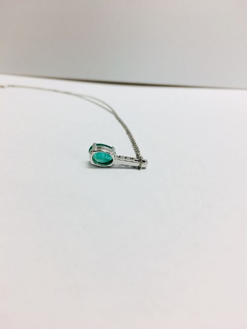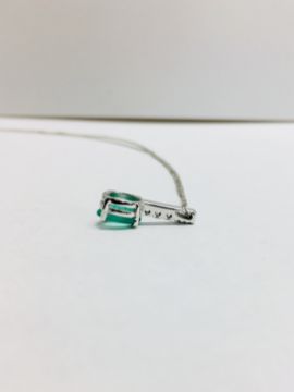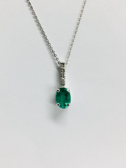 7X 5Mm Oval Emerald Set With 5 Small Brilliant Cut Diamonds, Weighing 0.025Ct. H/I Colour. Si2 Clarity. Mounted In 14Ct White Gold With A 9Ct Fine Curb Chain.