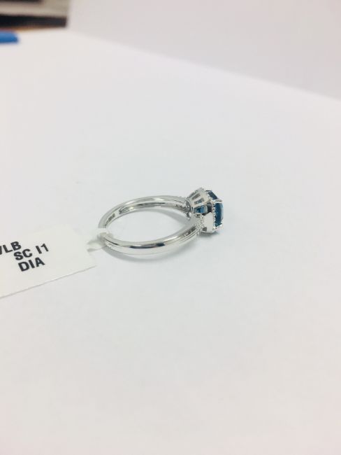 32 Round Brilliant Cut Diamonds,I Colour I1 Clarity 0.10Ct,1Blue Topaz 6Mm Cushion Cut Topaz,9Ct 1.88Gms,Uk Size K,Uk Hallmark,Condition Fine/New.