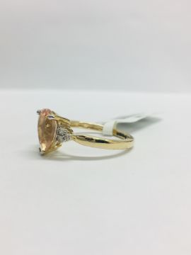 6 Single Cut Diamonds,I1 Clarity,I Colour,0.06Ct 1 Morganite ,9X6Mm ,2.20Gms 9Ct Yellow Gold,Uk Size M,Uk Hallmark,Condition Unused