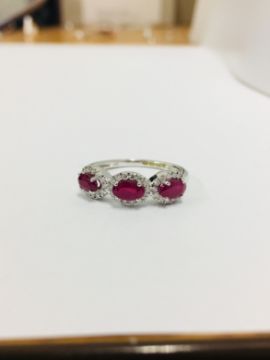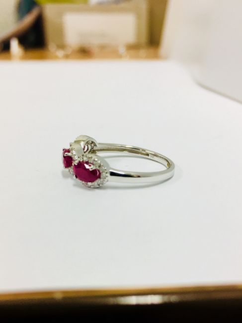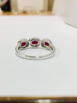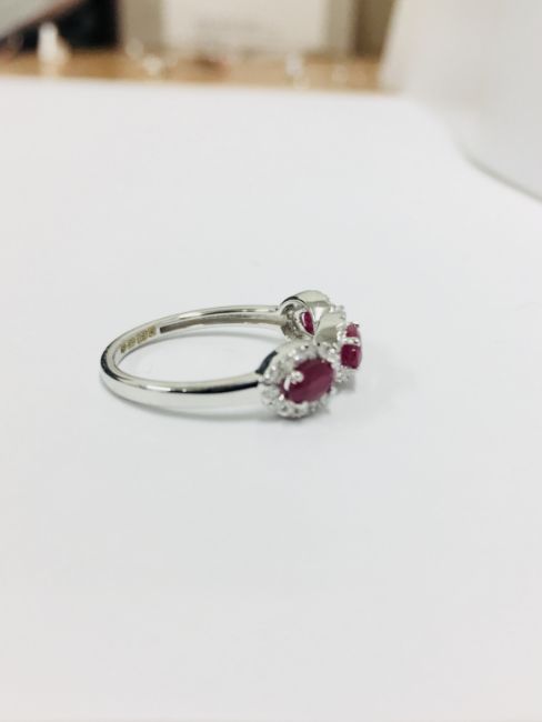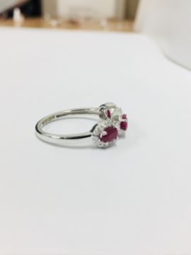 9Ct White Gold 2.20Gms 42 Round Diamonds H Colour Si Grade 0.20Ct 3 Rubie 1.05Ct,Uk Hallmark Size L