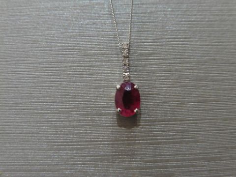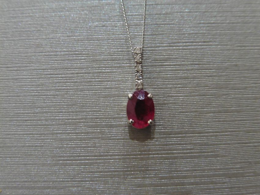 7X 5Mm Oval Ruby Set With 5 Small Brilliant Cut Diamonds, Weighing 0.025Ct. H/I Colour. Si2 Clarity. Mounted In 14Ct White Gold With A 9Ct Fine Curb Chain.