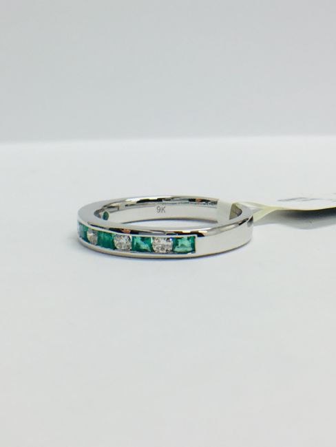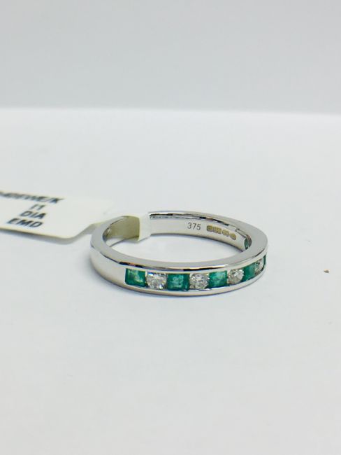 5 Round Diamonds, 0.16Ct, 6 Round Emerald ,0.43Ct,All Natural Stones,2.80Gms 9Ct,Size L,Uk Hallamrk,Condition Fine.Unused