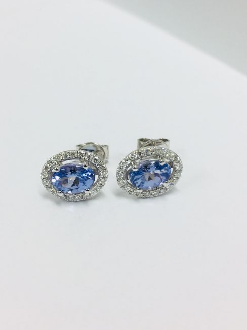 9K White Gold 1.40Gms 42 Round Diamonds 0.18Ct 2Xtanzanites Natural 0.95Ct,