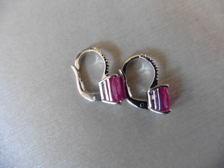 Each Is Set With A 7X 5Mm Oval Cut Ruby (Treated) With 6 Small Brilliant Cut Diamonds Set On Top. Set In 9ct White Gold With A Snap Hinged Fastner.