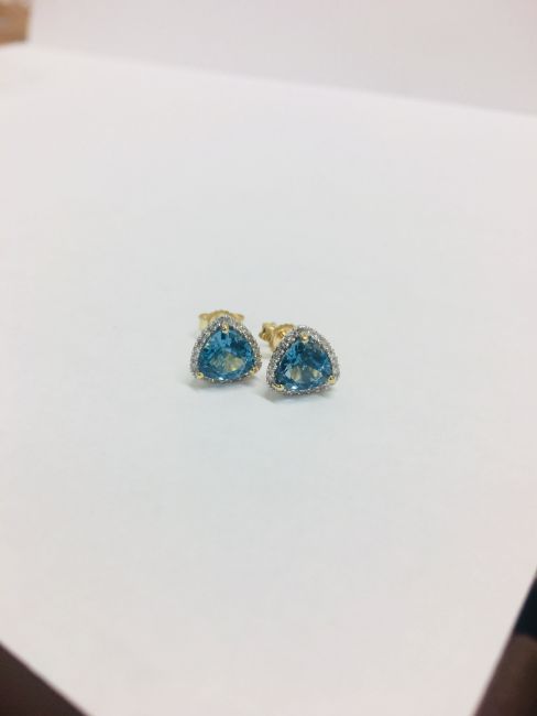 42 Brilliant Cut Diamonds,H Colour I1 Clarity 0.14Ct, 2 Blue Topaz London 6X6Mm Trillion Cut,1.40Gms White Gold 375 9Ct,Uk Hallmark,Condition Fine/New