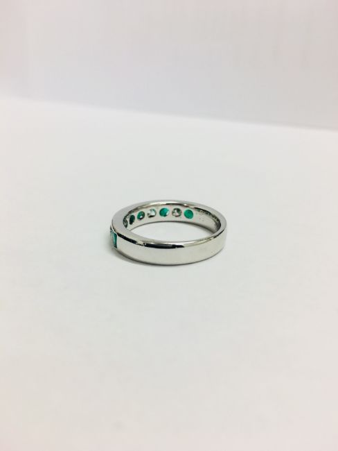 5 Natural Round Emeralds 0.50Ct ,4 Round Natural Diamonds,0.32Ct,H Colour Si2 Clarity,5.4Gms 18Ct White Gold,Uk Manufacture,Uk Hallmark London 2018,Uk Size K,Condition New