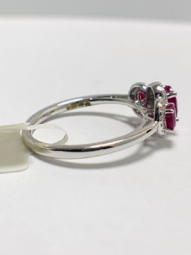 9K White Gold Ruby/Diamond Trilogy Cluster Ring, 42Round diamonds ,0.12CT,i colour,i1 clarity, 3 Rubies,0.97CT,Natural,2.49gms 9ct White Gold,uk size L,U.K. London hallmark,condition new